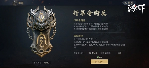 行军令每日仅能恢复24个,无论是【采集】资源还是完成赛季事件,都需要消耗行军令,其中单次采集就会用掉3个。由此可见,行军令是稀缺资源,务必避免浪费。建议在游戏前期,优先将行军令投入到【采集】活动中。