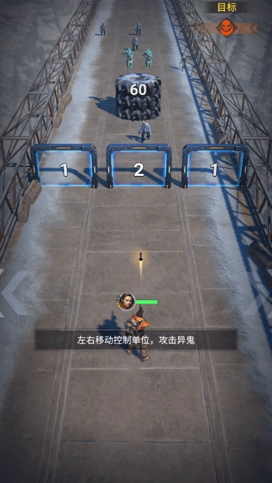 左右移动进行射击,你能够挑选对自己有利的方框,并且消灭僵尸。