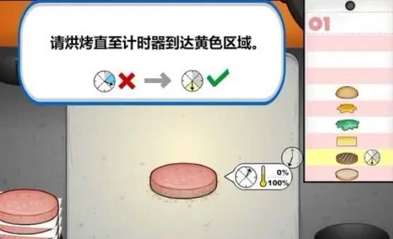 1.肉饼在合适的时间内翻面即可,无需等到刻度正中间。建议刚达到客户要求的熟度时赶紧起锅,确保热腾腾的肉饼用于制作汉堡。