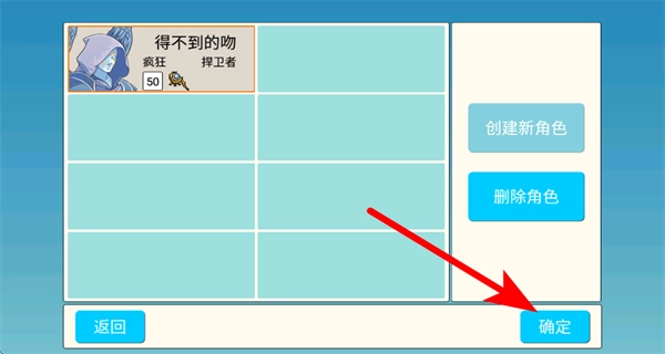 在角色选择界面,确认所选角色后点击确定按钮,即可完成角色选择并进入联机房间创建环节。