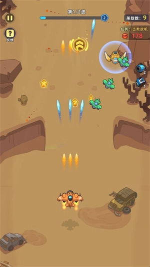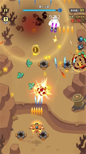 正式开始后,通过滑动屏幕能够操控战机移动,战机会自动发起攻击,一旦子弹命中敌人,便会对其造成伤害。