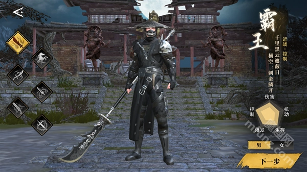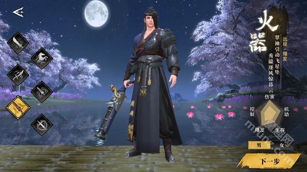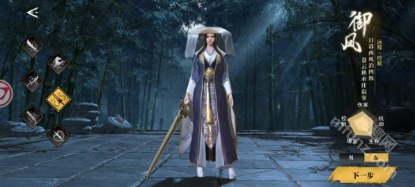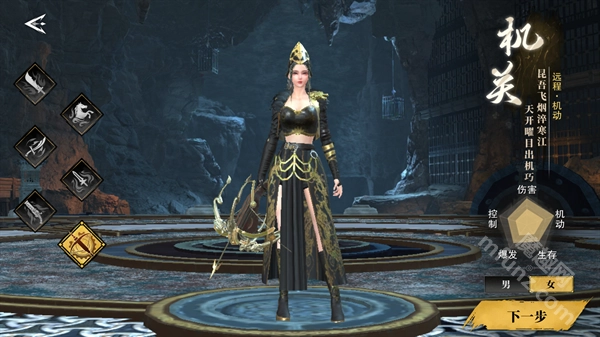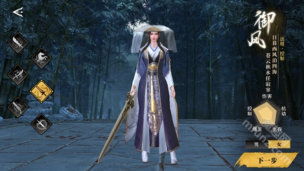 进入《天地贰》游戏后选择职业,共有六种职业可供挑选,且每种职业都有男女角色可选,选好后点击“下一步”即可。