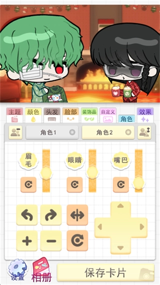 点击角色1,就能调整眉毛、眼睛、嘴巴等面部细节,从而打造出独特的角色形象。