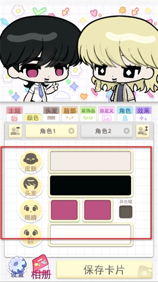 点击颜色,就能对皮肤、头发、眼睛等部位进行颜色定制,从而搭配出具有个性化的色彩组合。