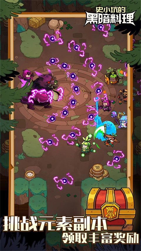 史小坑的黑暗料理正版,史小坑的黑暗料理是一款融合了佣兵、RPG与烹饪元素的游戏,玩家将化身冒险队长,带领小队前往多个生态迥异的神秘食物岛屿展开探索,并与造型奇特的食材怪物战斗。游戏包含了丰富的探索玩法,每座岛屿都有着独特的环境与挑战,玩家既能通过战斗解锁强力技能和装备,也能收集珍稀食材进行烹饪,还能招募捕获的奇异生物作为伙伴,不断壮大队伍实力,从而深入未知区域。