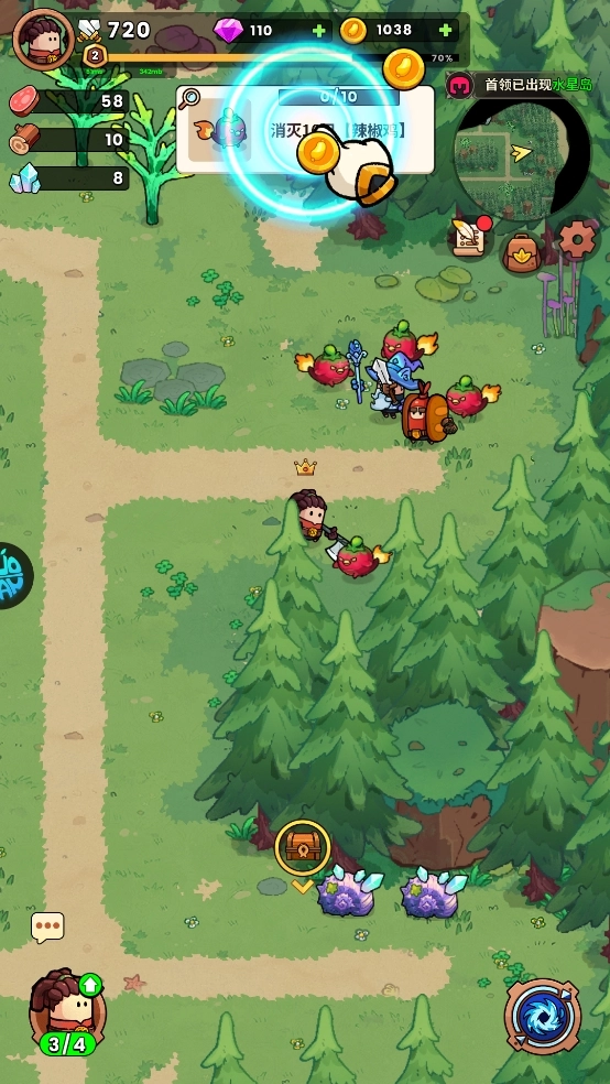 松开手指,英雄会自动攻击、砍树和挖矿。