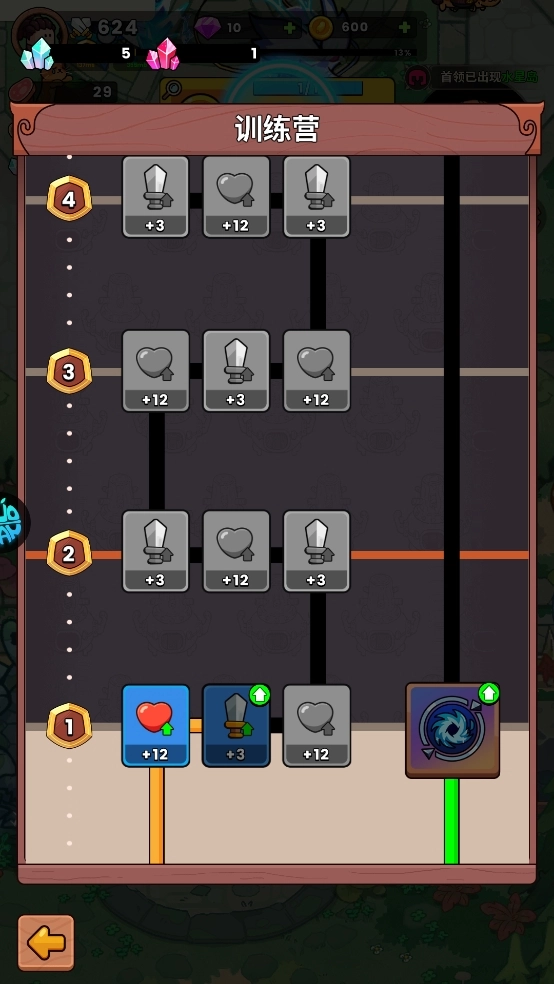 红/蓝水晶+:可通过挑战BOSS或采集矿石获取,主要用于训练营的属性提升与设施升级。