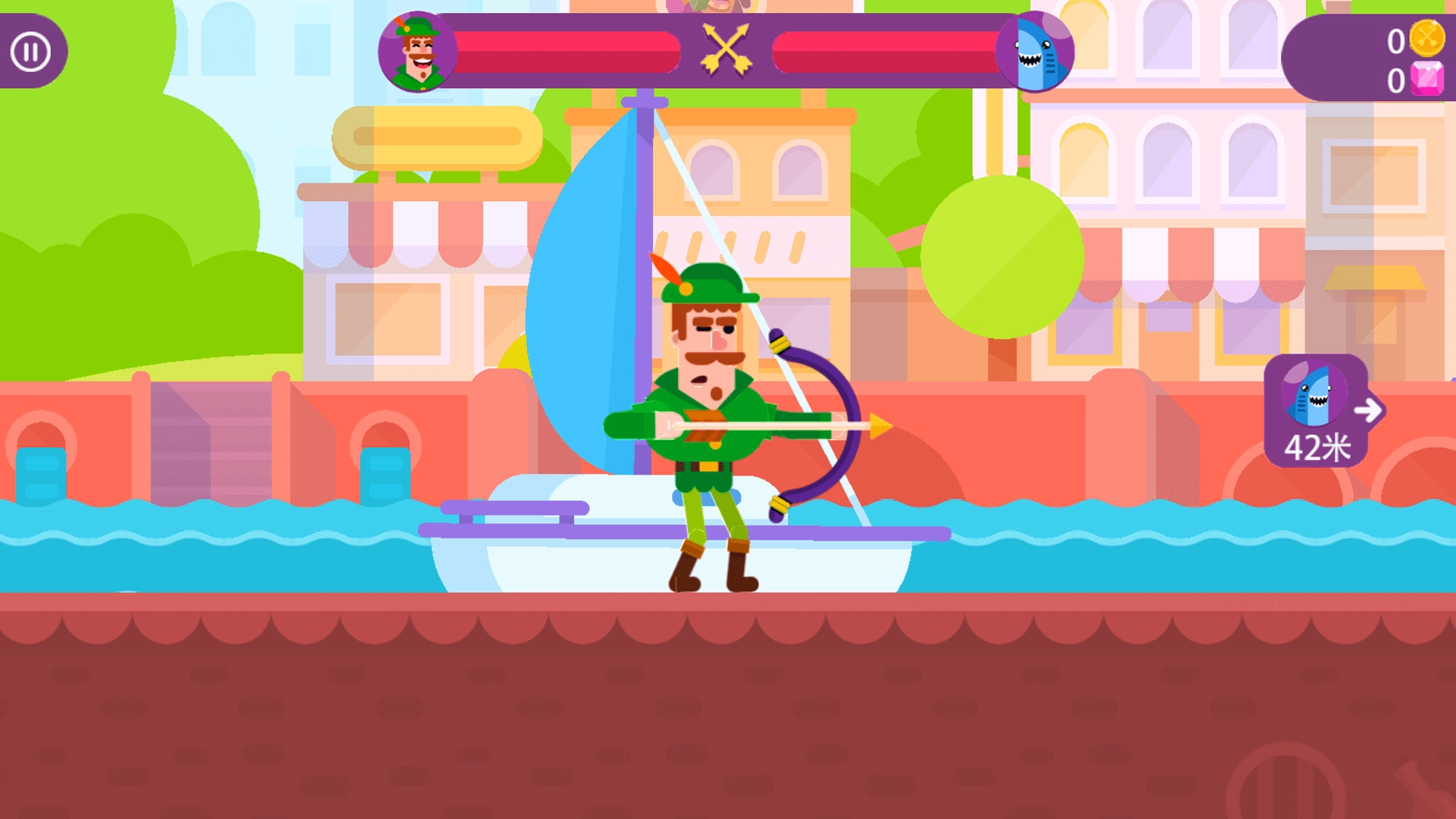 游戏打造了一个色彩鲜亮的卡通世界,玩家将化身箭术达人,在丰富的场景里和对手进行比拼。