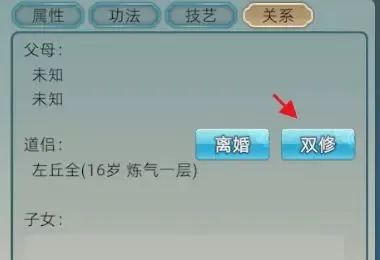 玩家与玩家、玩家与弟子、弟子与弟子之间均可进行双修,具体条件参考游戏内规则。