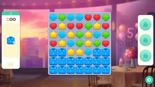 游戏由两部分构成,第一部分我们要借助三消玩法来完成关卡挑战。