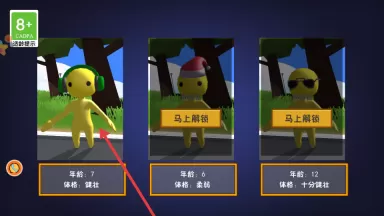 2、选择解锁角色:玩家可以选择不同造型的小黄人,查看其年龄体格等属性,解锁新角色后开始游戏,不同角色的独特技能能为闯关带来不同帮助,增加了玩家的策略性。