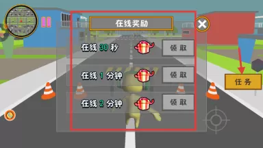 2、进入场景后留意弹出的在线奖励提示框,游戏设有在线时长奖励机制,不同时长都能领取对应的奖励,其中可能就包含金币,点击领取按钮就能轻松收获在线奖励。