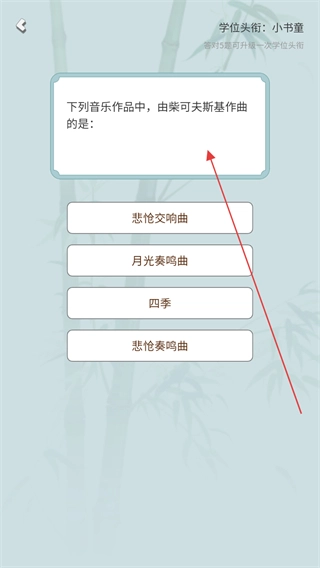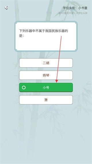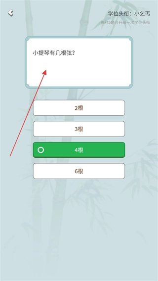 题目问小提琴有几根弦?,选择4根即可答对题。