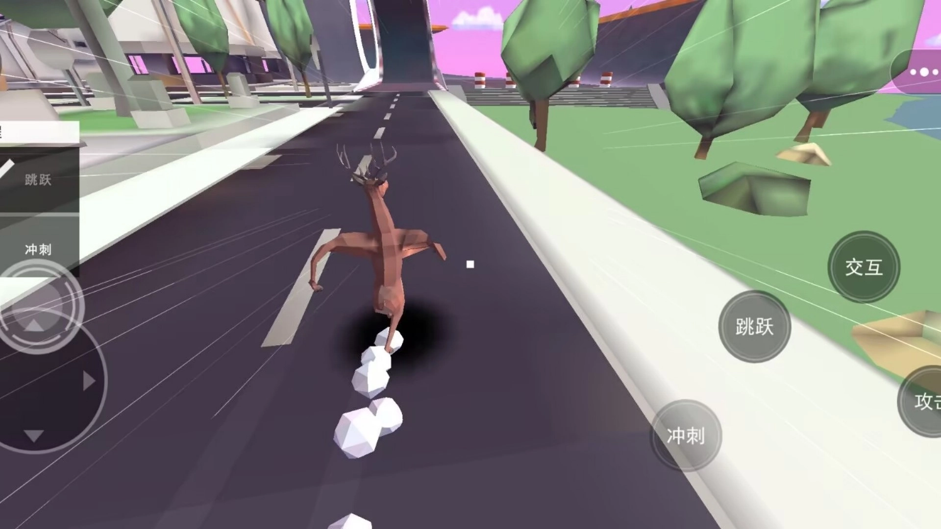 横冲直撞的物理破坏:鹿能够加速冲刺,撞击路人、车辆以及路边设施,借助惯性将目标击飞或推倒,同时观察不同对象被撞击后引发的连锁反应。