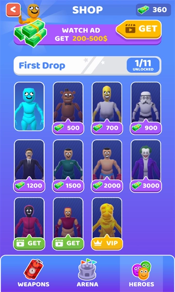 挑选你钟爱的英雄,给它搭配一套武器,就能开启一场史诗级的布娃娃火柴人对决啦。
