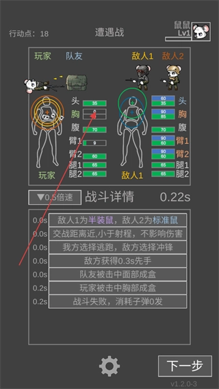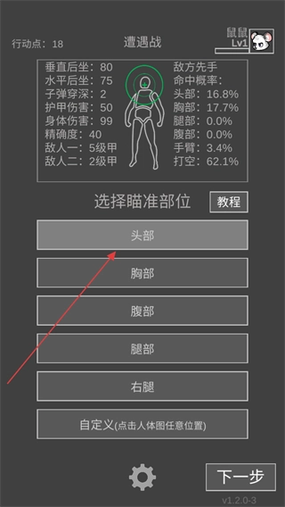 进入战斗状态后,需选择具体的瞄准部位,并按照先后手的规则来确定攻击方式。