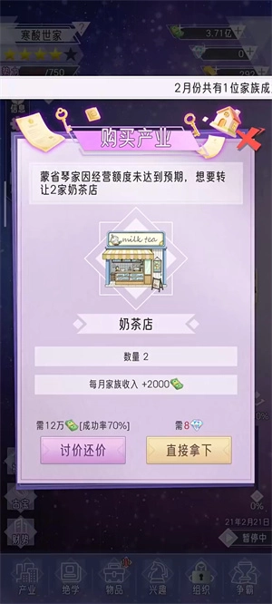 还能去购置全新的产业,像奶茶店这类,而且是可以进行讨价还价的。