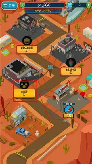 当钞票数量充足时,玩家就能继续点击购买,开拓其他业务。