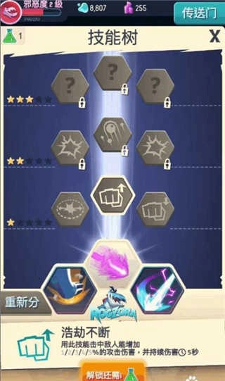 怪物(技能)升级。随着邪恶度等级的提升,能够获取技能点,用于提升怪物的等级以及怪物的技能。