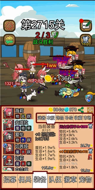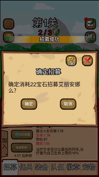 需要给佣兵分配合适的装备,另外还能收藏宝物、收集徽章。