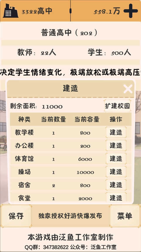 在游戏里,你需要做的就是持续优化校园内的各类建筑设施,确保所有学生都能获得最优质的照料。