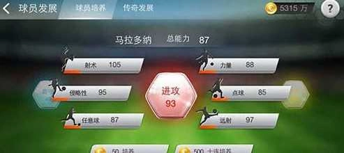 当我们拥有了足够多的球员后,接下来就该着手培养自己的球员了,这样我的这些“战五渣”才能变强~哈哈!首先是球员升级,不同品质的球员升级上限不一样,主要通过比赛、使用经验道具和联盟训练房这三种途径来实现;其次是球员培养,同样不同品质的球员培养上限有差异,培养能提升球员的各项属性,提升幅度和升级差不多;最后是球员突破,不过只有A-级别及以上的球员才有突破资格,突破能让球员进一步提升,对个别能力有较大增幅,但整体提升幅度不如升级和培养。