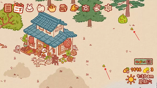 1、进入游戏,左上角是菜单,点击日程安排、兔子礼物、背包、装饰修改、相机、照片以及设置等选项。