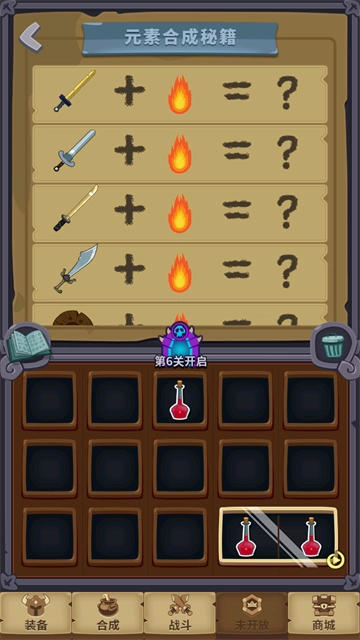在游戏里,元素合成玩法能解锁全新的装备道具,通过策略性的合成操作,各类强力神装武器将纷纷登场。