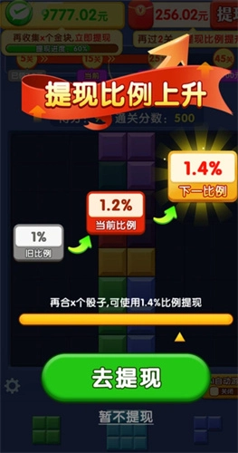 关卡里的方块都是随机生成的,玩家的目标是把它们消除掉,只有这样才能顺利通过关卡,而且每次获得的福利都很不错。