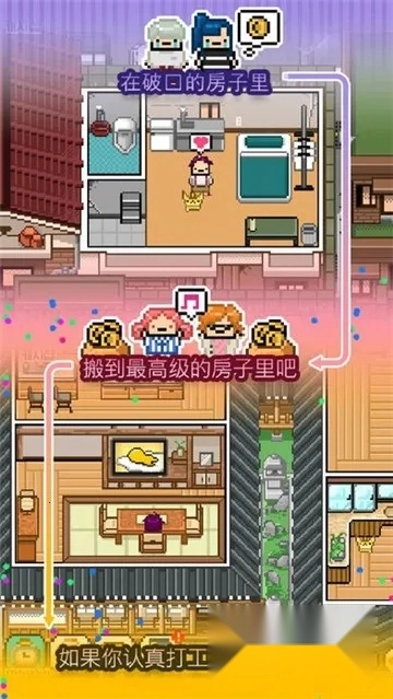 游戏采用像素风格制作,具备趣味设计、写实互动以及还原现实的细节,为玩家带来真实的独居生活感受。2. 游戏操作简便,适合不同年龄段人群,内容设定贴近日常生活,能让玩家产生强烈的代入感。3. 在游戏里,玩家可以结识朋友、寻觅人生伴侣,还能够饲养和培育宠物。4. 游戏拥有超过80种不同结局,玩家的每一个选择与行动都会对故事的发展方向产生影响。