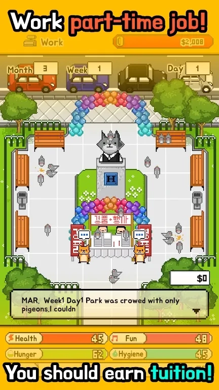 《Living Alone》是一款像素风模拟养成游戏。在这里,玩家将开启一段全新的人生旅程——独自完成大学学业,而后踏入社会。游戏操作简便,适合不同年龄段的玩家体验。游戏设置了超过80种结局,玩家可以在其中结交朋友、饲养宠物,还能收集各类服饰进行搭配。打工赚钱、努力学习、拓展社交等丰富玩法,能让你全方位体验独居生活中的酸甜苦辣。