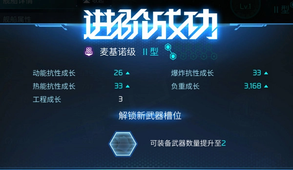 舰桥等级提升至10级后,舰船可进行进阶操作,属性会进一步增强,同时解锁武器卡槽。