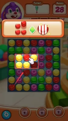 2、经典三消玩法全面升级,融入魔法道具和特殊糖果元素。交换相邻糖果形成组合,触发连锁反应消除大片区域,体验爽快消除乐趣。