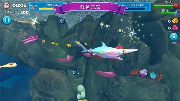 频繁使用加速功能会让鲨鱼饿得更快,赶路时尽量别开加速——哪怕靠吃小鱼来加速都不划算,只有在捕食人类或大型猎物时,再用加速发起攻击才合适。