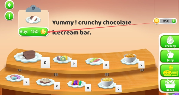 在商店界面,你可以用金币购买各种各样的松脆食品,而且不同的食物会带来独一无二的咀嚼音效。