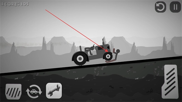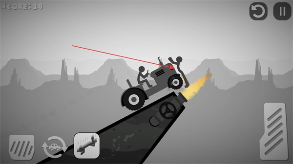 驾驶拖拉机在凹凸不平的地形行进,借助右侧的加速按钮来调控速度,通过碾压火柴人获取分数。
