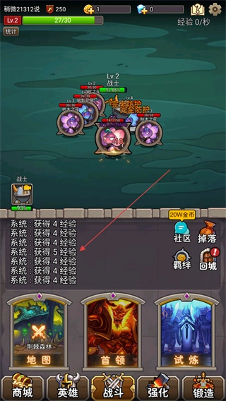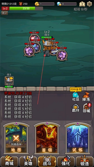 持续挂机战斗,可获取海量金币与经验,还能得到勇者重剑等装备,助力英雄战力不断强化。