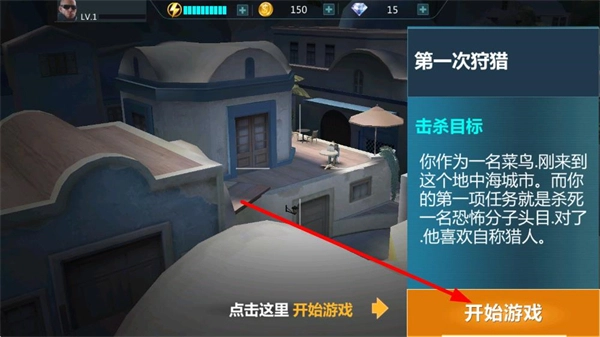 点击“开始游戏”按钮进入任务场景,依据任务提示明确目标相关信息,挑选恰当的狙击点位,保障任务能够顺利推进。