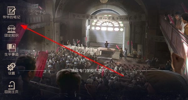 想查看爷爷的笔记,只需在菜单里选中“爷爷的笔记”这个选项,就能了解其中的历史与故事,让叙事体验变得更加丰富。