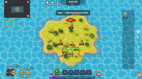 在岛屿地图界面,拖动史莱姆并选定目标位置完成移动,以此抢占更多领地与资源点。