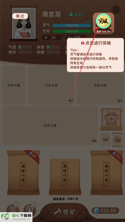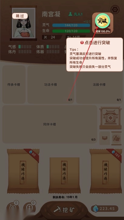 然后点击突破