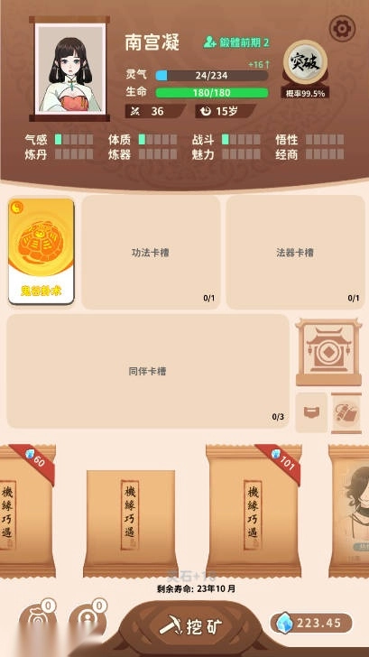 策略性十足:游戏里的抽卡、功法修炼和道友结交等玩法,都要求玩家深入思考并做好策略规划。无论是资源分配、功法搭配,还是道友阵容组合,每一个选择都会左右角色的成长,为玩家带来了充满策略性的游戏体验,让玩家切实体会到掌控角色命运的快乐。