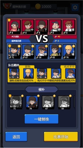 比赛时得团队协作上阵,每支队伍都能派出五人同时上场,剩下的成员则作为替补待命。