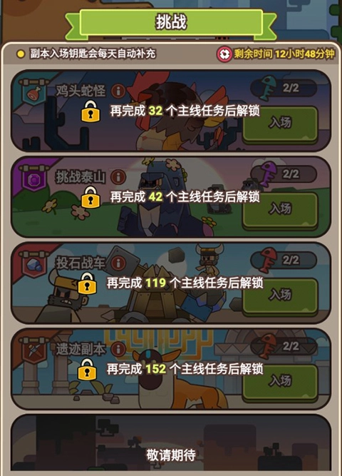 另外,玩家完成主线任务后,能够解锁各类挑战副本,从而获得丰厚的资源。