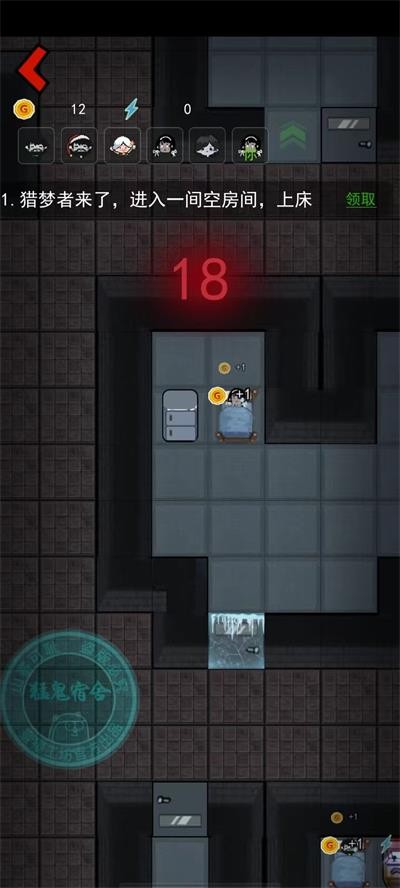 进入游戏后,玩家需要在倒计时结束前找到一个空房间,按照游戏里绿色的提示进入房间(别忘了关上大门),接着躺在床上睡觉就能持续获得金币;另外完成任务也能领取金币,比如升级床、大门或者建造建筑物。