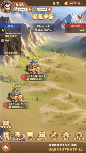 每位玩家都拥有2次挑战机会,能够在阵地里挑选并向敌方据点发起挑战,不管挑战结果是赢是输,都会扣除1次挑战机会。
