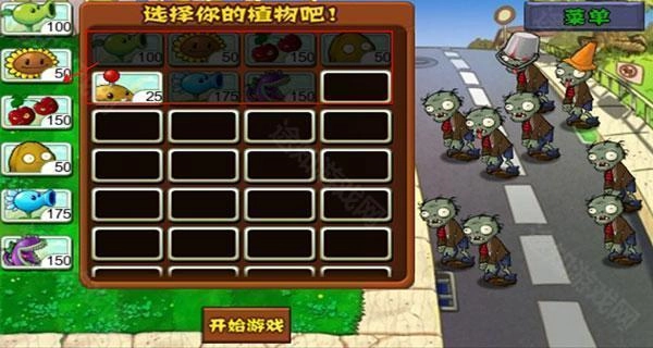 9、当玩家拥有6个以上植物就是通过了新手指导,玩家可以在下图选择自己喜欢的、合适的植物来闯关;