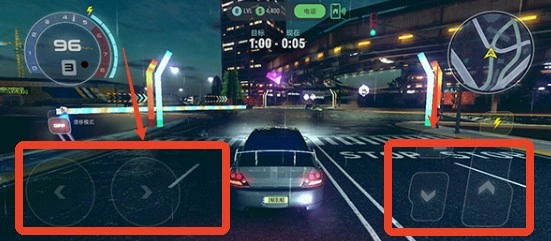 进入游戏后,屏幕左侧设有调整车辆行驶轨迹的操控键,右侧则依次排列着控制动力衔接、减速制动和加速推进的功能键。