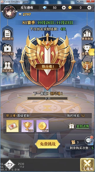 玩法介绍:通过随机匹配玩家进行战斗,提升斗魂积分,根据斗魂积分进行排名