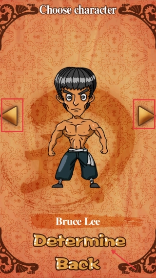 2、接着到角色选择界面,能看到【BruceLee】角色,点击【Determine】确定选择该角色。